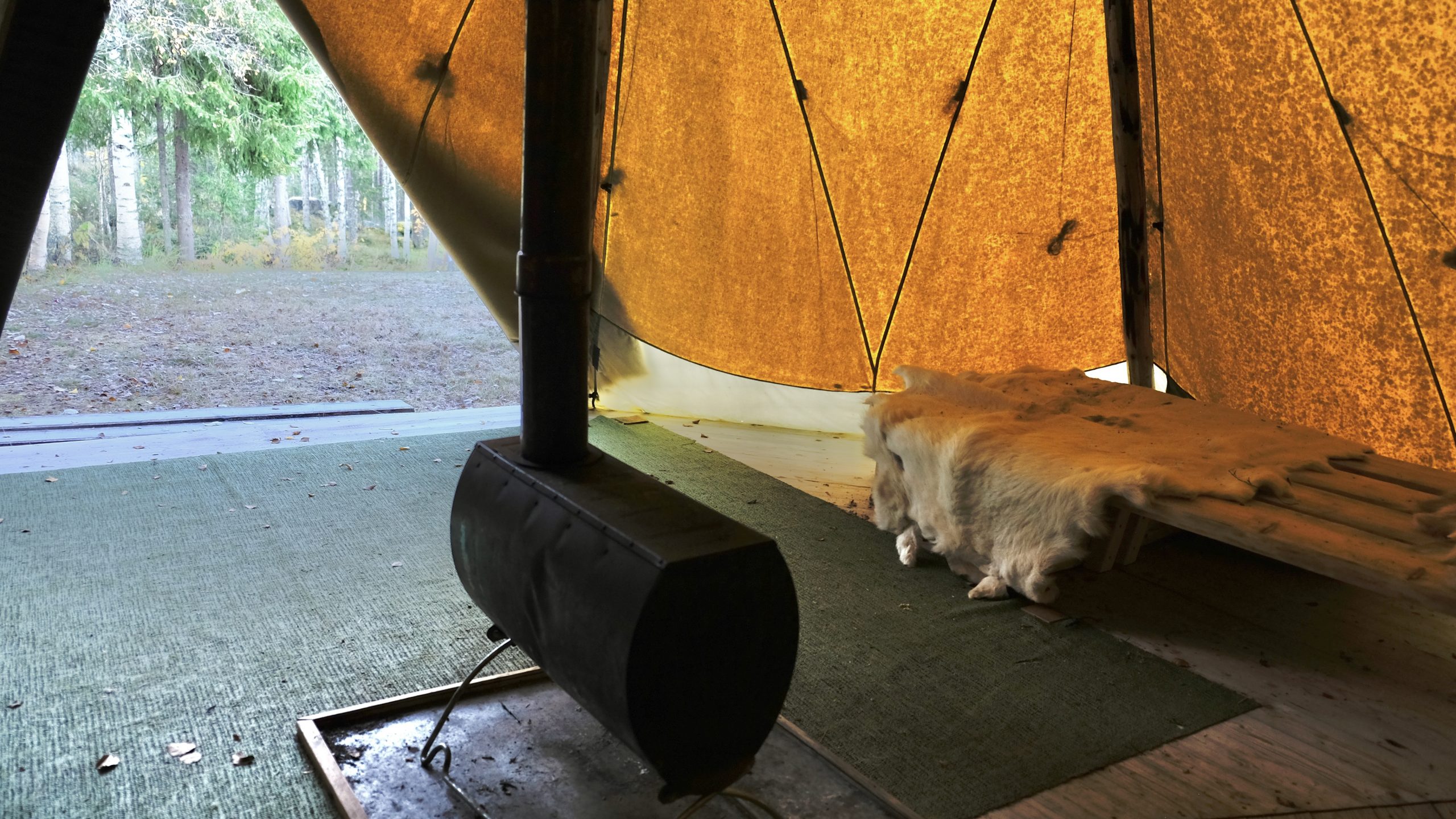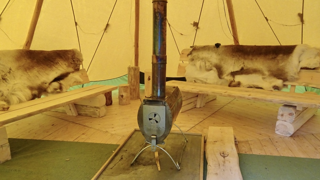 Tauche ein in die Wildnis Schwedisch Lapplands und erlebe eine Unvergessliche Übernachtung im Tipi im Wald, fernab vom Alltag. Das geräumige Safir 9 von Tentipi, aus robustem Baumwoll-Polyester-Stoff gefertigt, bietet auf 15 Platz für 1-2 Personen. Die großen Bänke, die sich mit einem Handgriff zu komfortablen Betten umklappen lassen, sind mit weichen Rentierfellen ausgelegt, die für wohlige Wärme sorgen. Dank des Zeltofens aus Edelstahl, der nicht nur als Heizung dient. sondern auch zum Kochen genutzt werden kann, wird das Tipi zu einem behaglicher Rückzuasort. selbst in den kühlen Abendstunden.